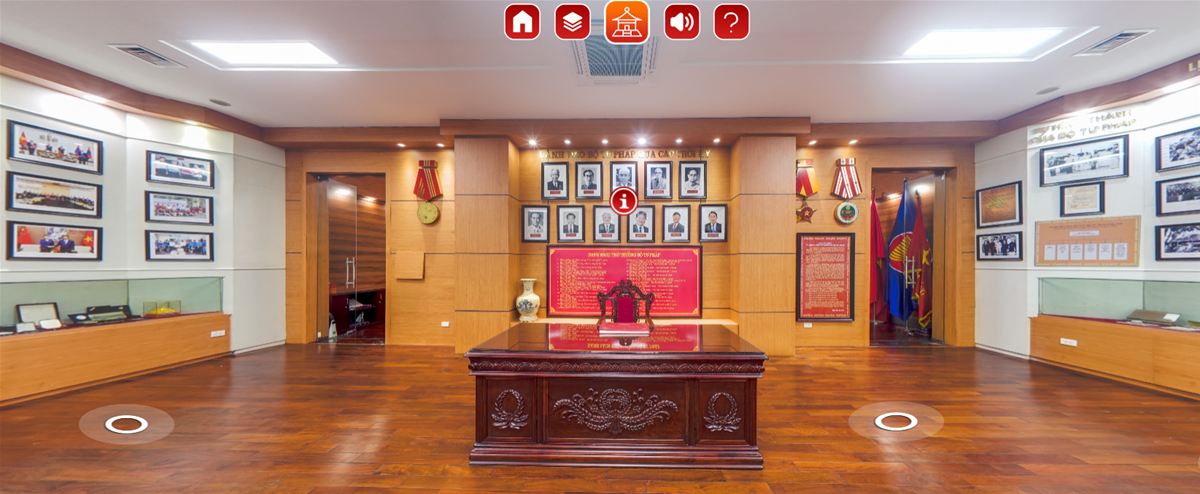 Phòng Truyền thống số gồm hai không gian chính: Phòng Truyền thống tại Trụ sở Bộ Tư pháp (Hà Nội) và Khu Di tích lịch sử Bộ Tư pháp tại Tuyên Quang. Với công nghệ thực tế ảo VR360, mô hình 3D, bản đồ không gian kết hợp thuyết minh đa phương tiện (âm thanh, hình ảnh, lời kể), người xem có thể trải nghiệm tham quan trực tuyến sống động như đang hiện diện trực tiếp.