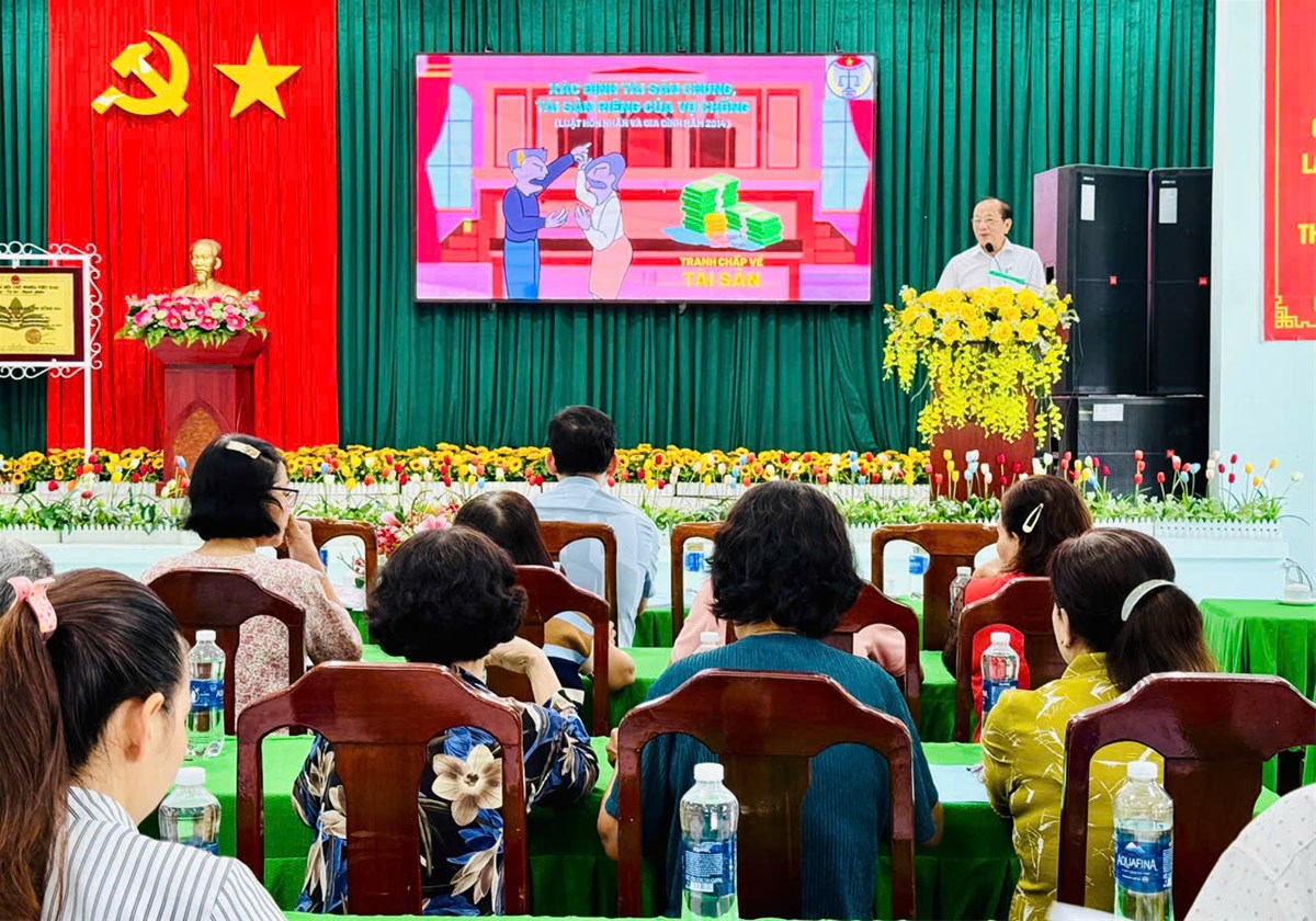 Tại Hội nghị, các đại biểu đã được nghe Luật gia Phan Văn Châu – Chủ tịch Hội Luật gia tỉnh trực tiếp truyền đạt chia sẻ những nội dung quan trọng của pháp luật về Luật Hôn nhân và gia đình, Luật Phòng, chống bạo lực gia đình, đặc biệt nhấn mạnh một số quy định về biện pháp phòng, chống bạo lực gia đình; cách xác định tài sản chung, tài sản riêng của vợ, chồng; hướng dẫn cách đăng ký tài sản chung của vợ, chồng…
