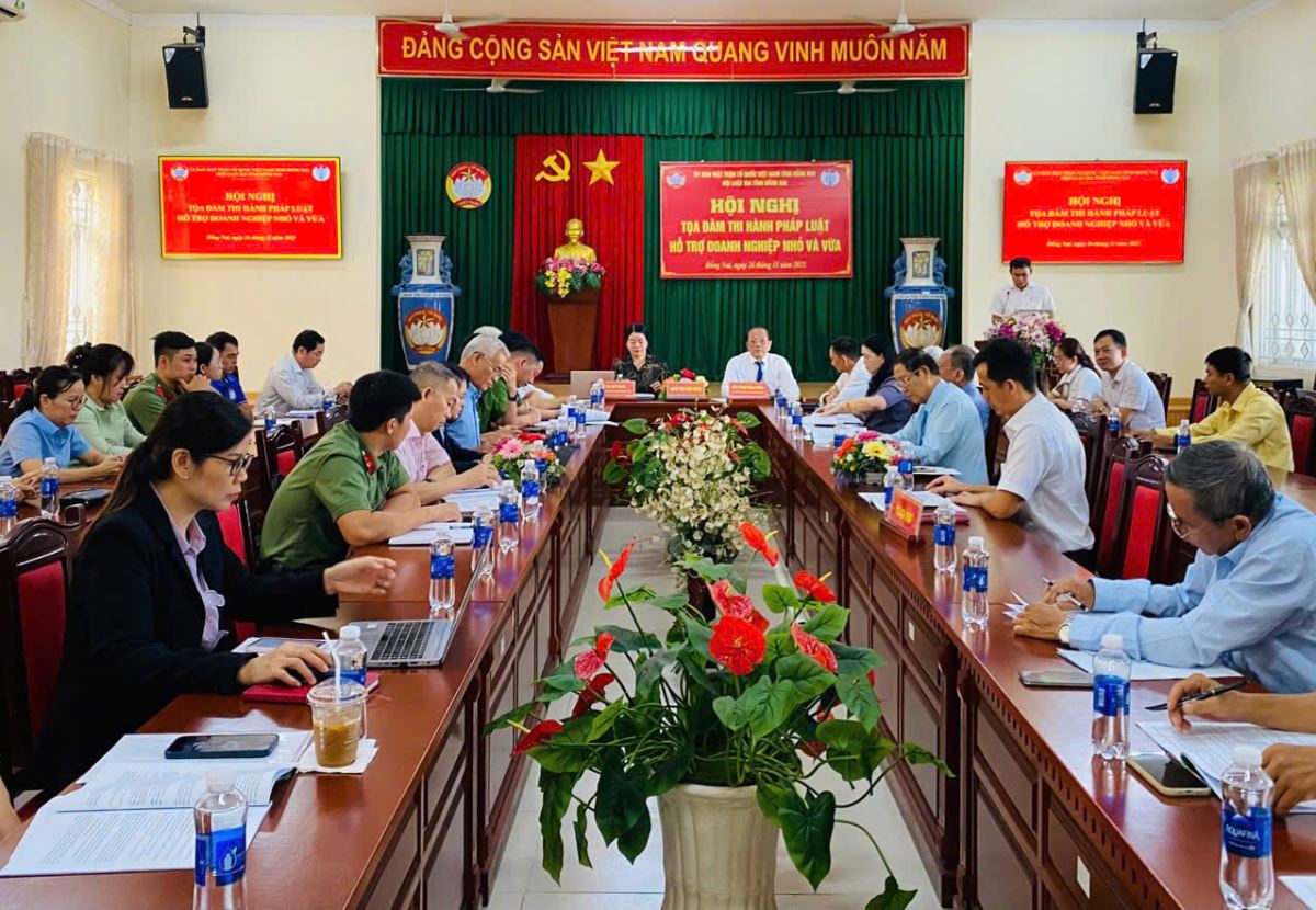 Ngày 26/11/2025, Ủy ban Mặt trận Tổ quốc Việt Nam tỉnh Đồng Nai phối hợp với Hội Luật gia tỉnh tổ chức Hội nghị tọa đàm pháp luật hỗ trợ doanh nghiệp nhỏ và vừa. Hội nghị tập trung thảo luận việc triển khai và thực hiện Nghị quyết số 68-NQ/TW ngày 04/5/2025 của Bộ Chính trị cùng các văn bản, kế hoạch của tỉnh về phát triển kinh tế tư nhân trên địa bàn.