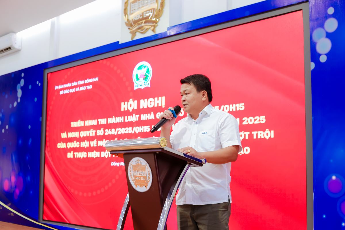 Nhằm thực hiện các nhiệm vụ với vai trò thành viên của Hội đồng Phổ biến, giáo dục pháp luật tỉnh Đồng Nai, vào lúc 08g00 ngày 31 tháng 3 năm 2026, tại Trường Tiểu học, Trung học cơ sở, Trung học phổ thông Song ngữ Á Châu, Sở Giáo dục và Đào tạo đã tổ chức Hội nghị truyền thông, triển khai thi hành Luật Nhà giáo số 73/2025/QH15 và Nghị quyết số 248/2025/NQ-QH15 của Quốc hội về các cơ chế, chính sách đặc thù, vượt trội nhằm tạo ra đột phá mạnh mẽ cho sự phát triển giáo dục và đào tạo với sự tham gia của 200 đại biểu đến từ UBND các xã, phường và các đơn vị thuộc và trực thuộc Sở trên địa bàn tỉnh Đồng Nai (cũ).