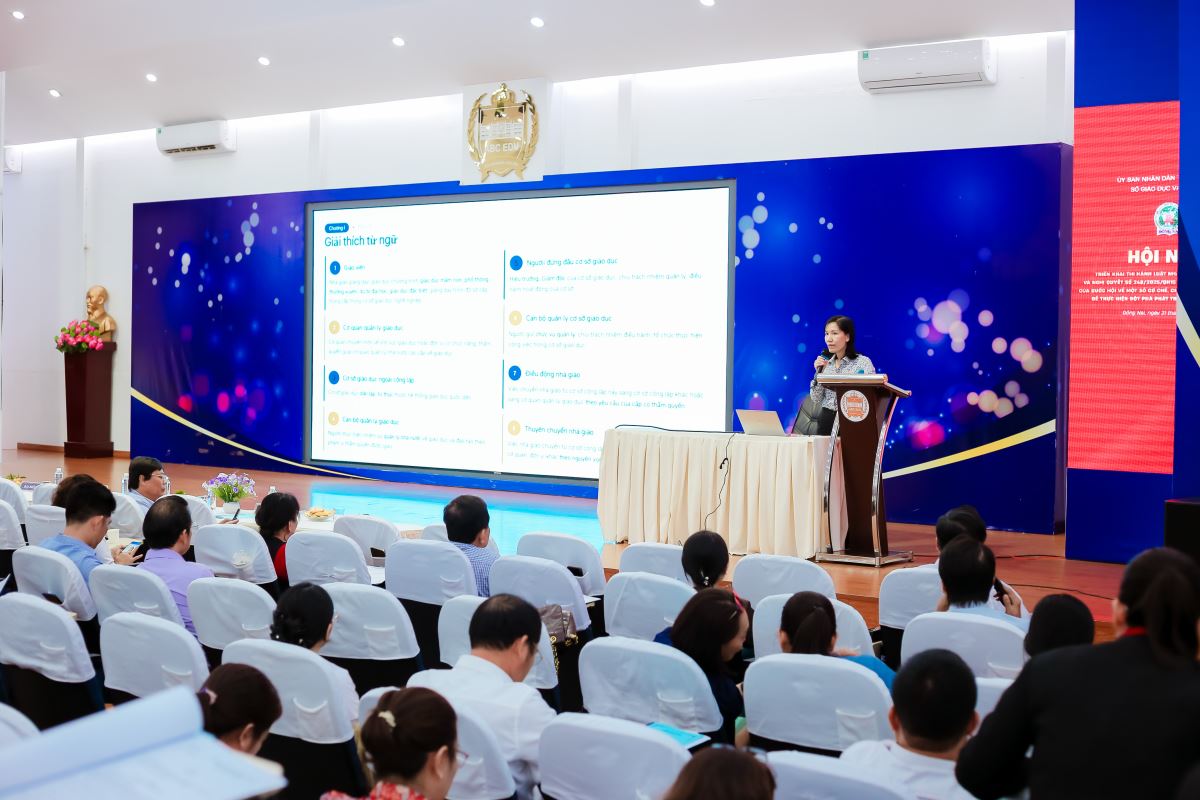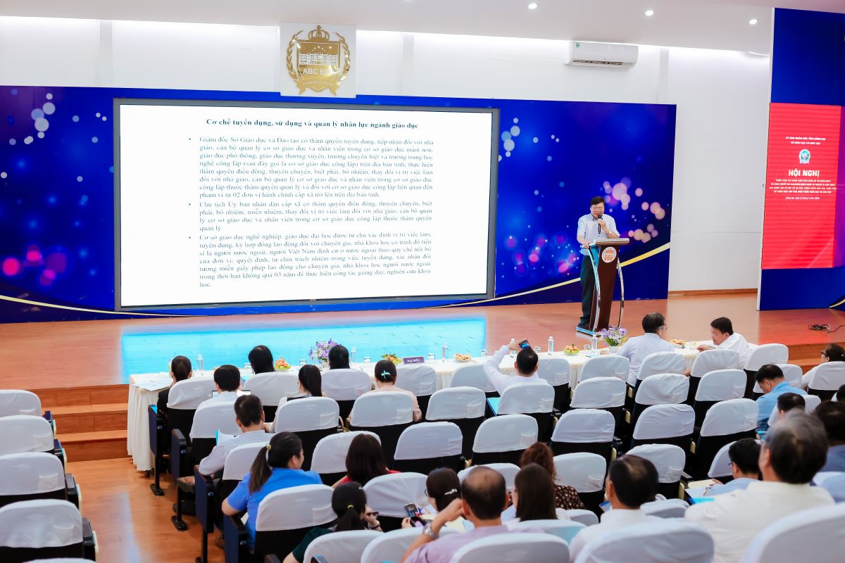 Tại Hội nghị, các Báo cáo viên pháp luật tỉnh đã tập trung phổ biến, triển khai một số nội dung cơ bản, điểm mới của Luật Nhà giáo số 73/2025/QH15 như: vị thế, vai trò của Nhà giáo; quyền và nghĩa vụ của Nhà giáo, hoạt động nghề nghiệp của Nhà giáo như: tuyển dụng, sử dụng, đào tạo, bồi dưỡng, đãi ngộ và tôn vinh Nhà giáo, quản lý nhà nước về Nhà giáo và các nội dung trọng tâm của Nghị quyết số 248/2025/QH15 tập trung vào các quy định: về cơ chế tuyển dụng, sử dụng và quản lý nhân lực ngành giáo dục; các chính sách đặc thù, vượt trội về đãi ngộ đối với nhân lực trong ngành giáo dục, phát triển chương trình giáo dục; chuyển đổi số và hợp tác quốc tế; hỗ trợ người học và đào tạo nhân lực trình độ cao; các chính sách ưu đãi đầu tư cho giáo dục và đào tạo; các nội dung chuyển tiếp khi kết thúc hoạt động của hội đồng trường các cơ sở giáo dục công lập.