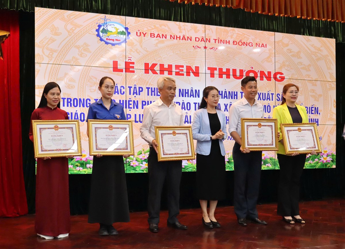 Nhân dịp này, Hội nghị đã công bố và trao Bằng khen của Chủ tịch UBND tỉnh cho 05 tập thể và 12 cá nhân có thành tích xuất sắc trong thực hiện phong trào thi đua xây dựng các mô hình PBGDPL và hòa giải ở cơ sở hiệu quả trên địa bàn tỉnh.